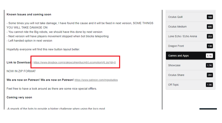 OculusのForumから"LocomotionV5.rar"をダウンロードします。2.MODをインストール